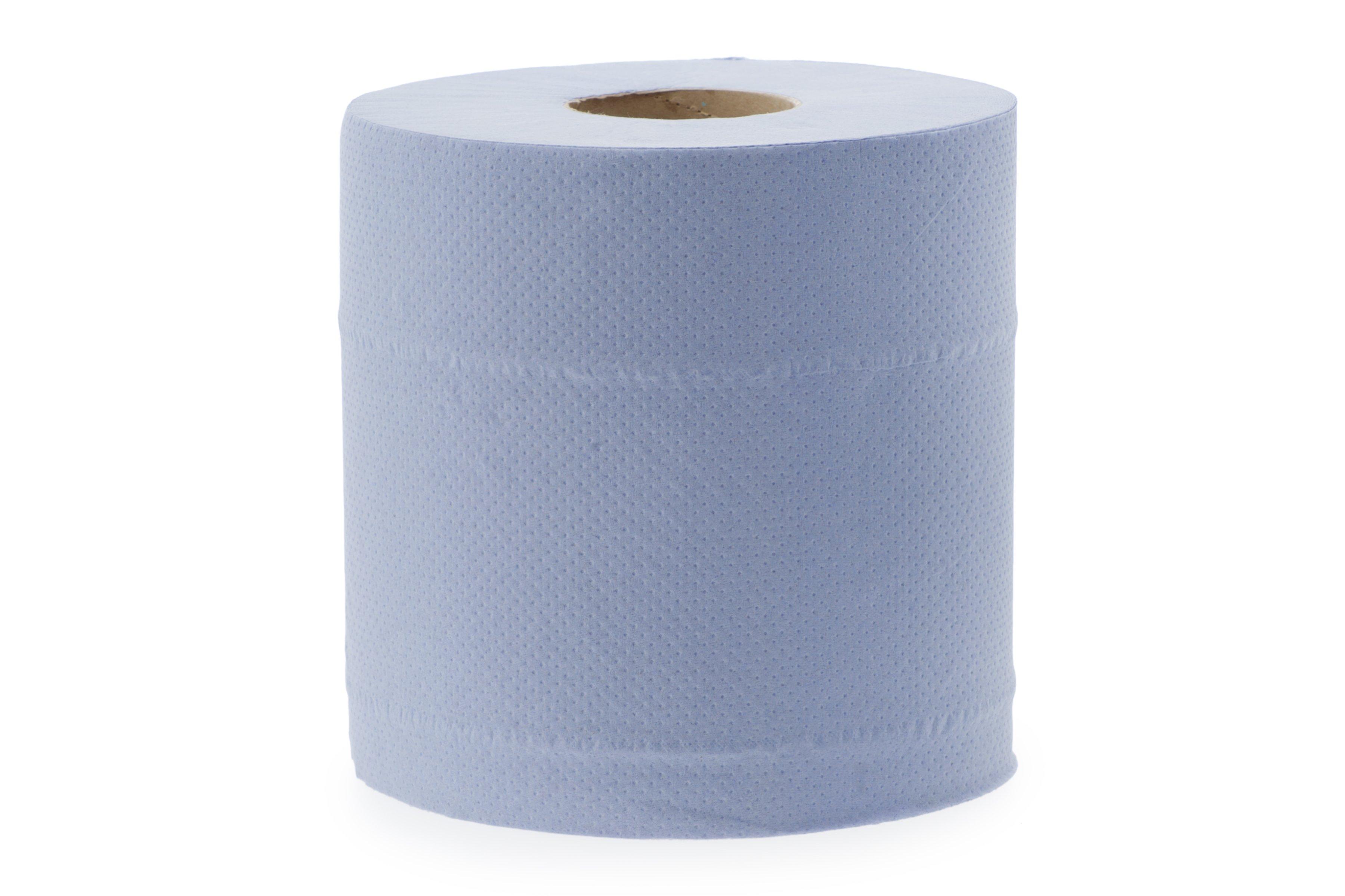 Migi 2 ply, blue recycled centrefeed roll. 300 sheets per roll. 175mm sheet width, 370mm sheet length. Long lasting and absorbent.
