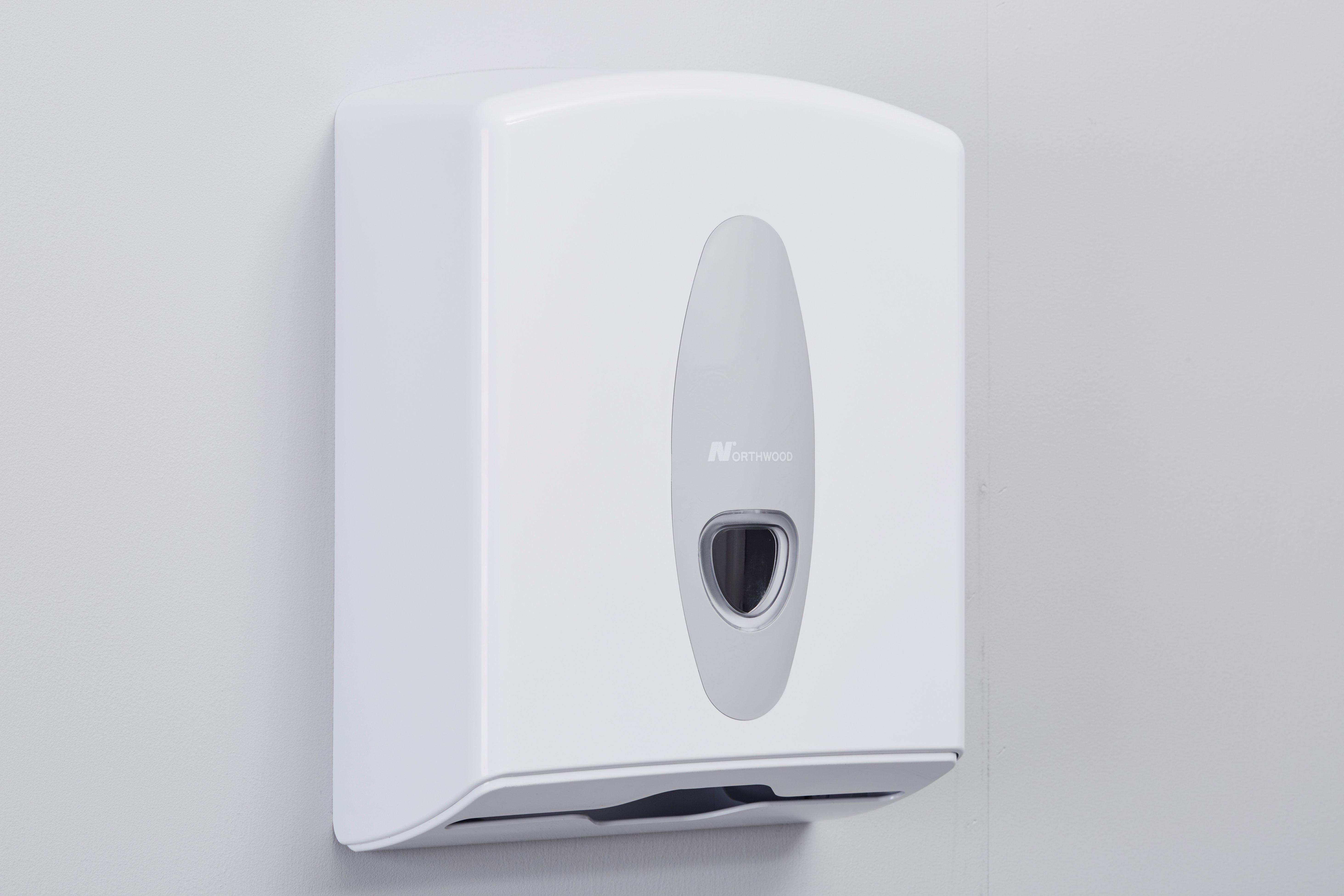 Hard-wearing dispenser with locking mechanism. Suitable for use with Z-Fold Hand Towels 87986.