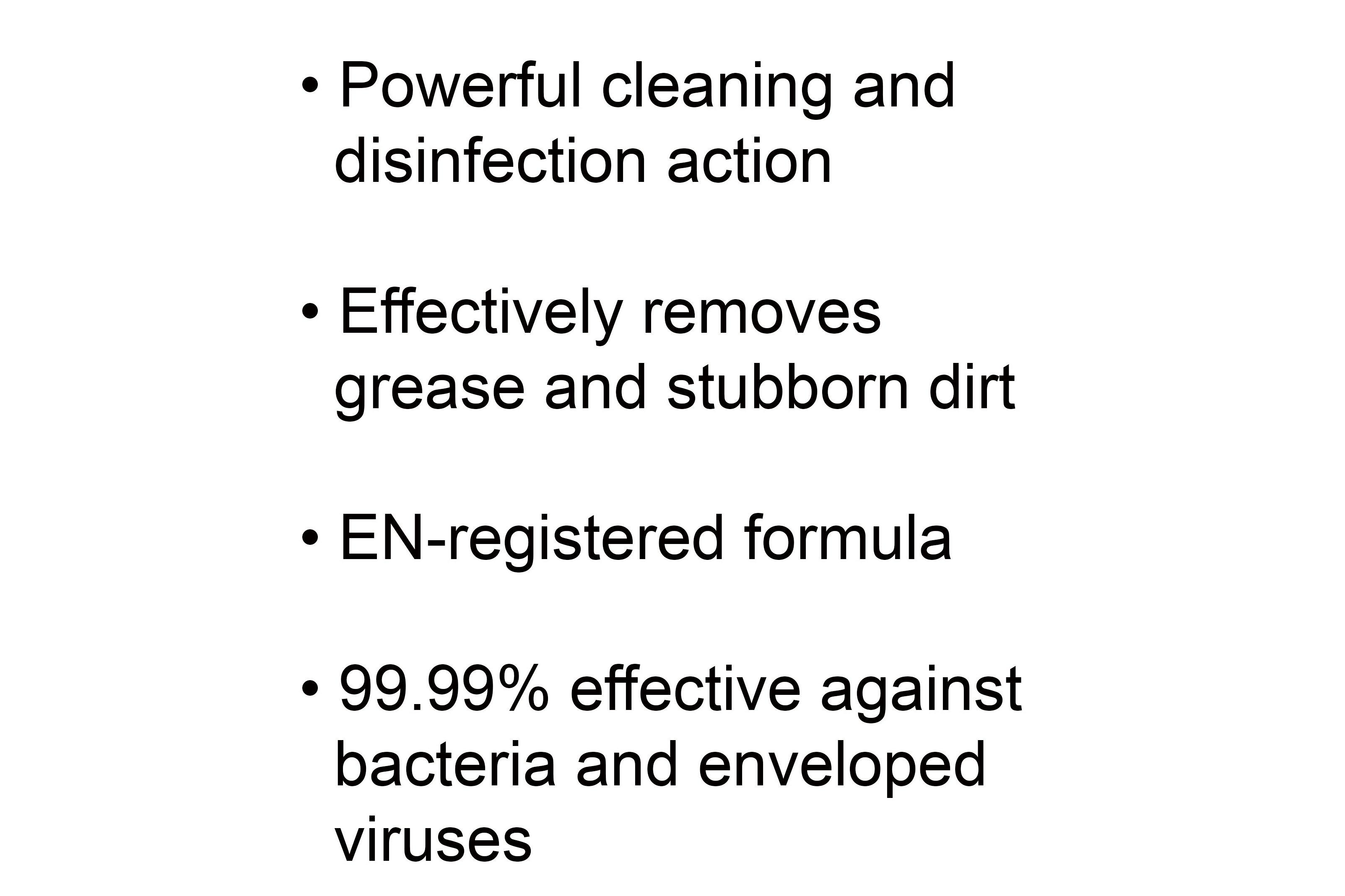 - Powerful cleaning and disinfection action, that effectively removes grease and stubborn dirt