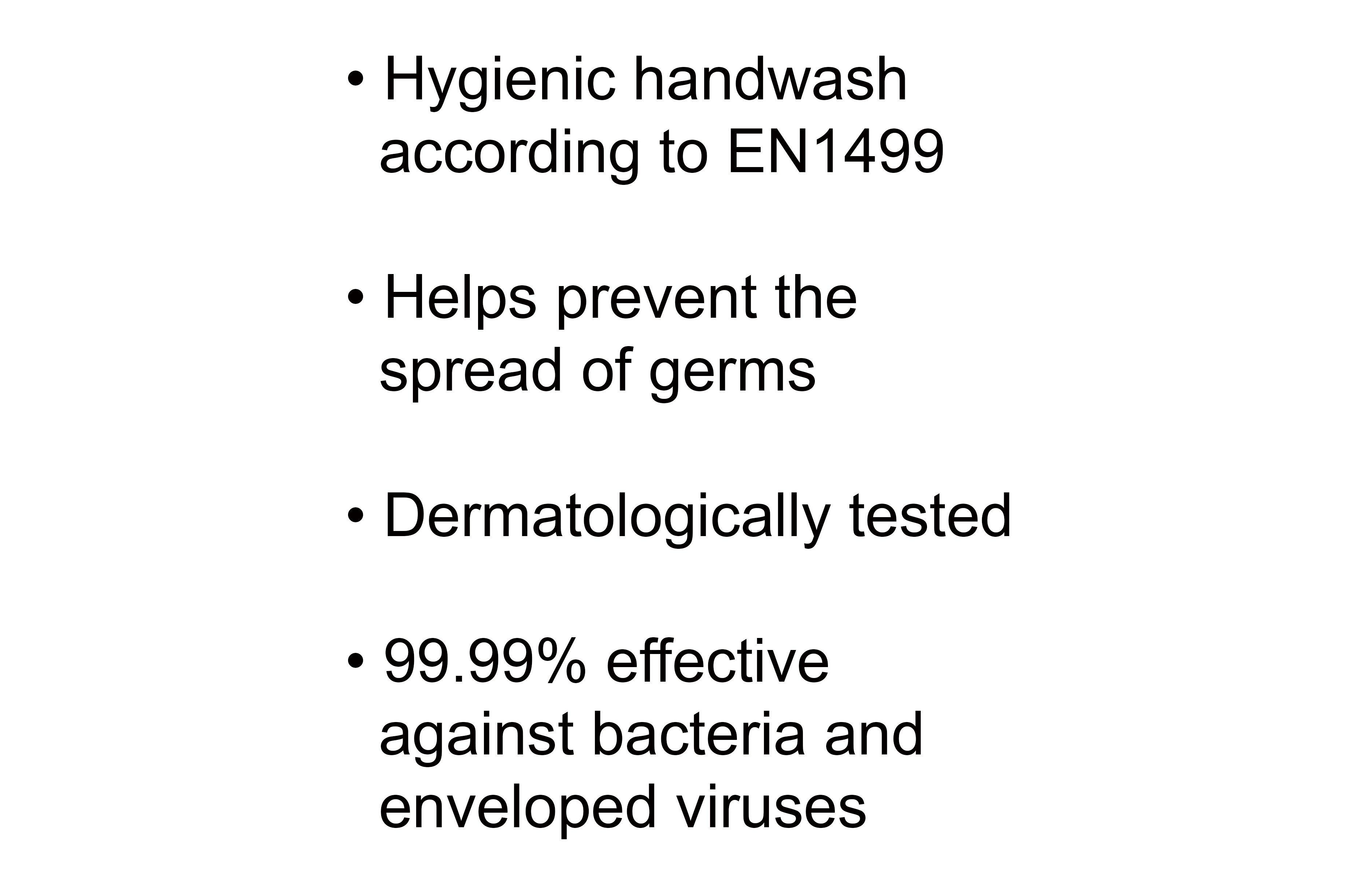 - Dermatologically tested, hygienic handwash according to EN 1499