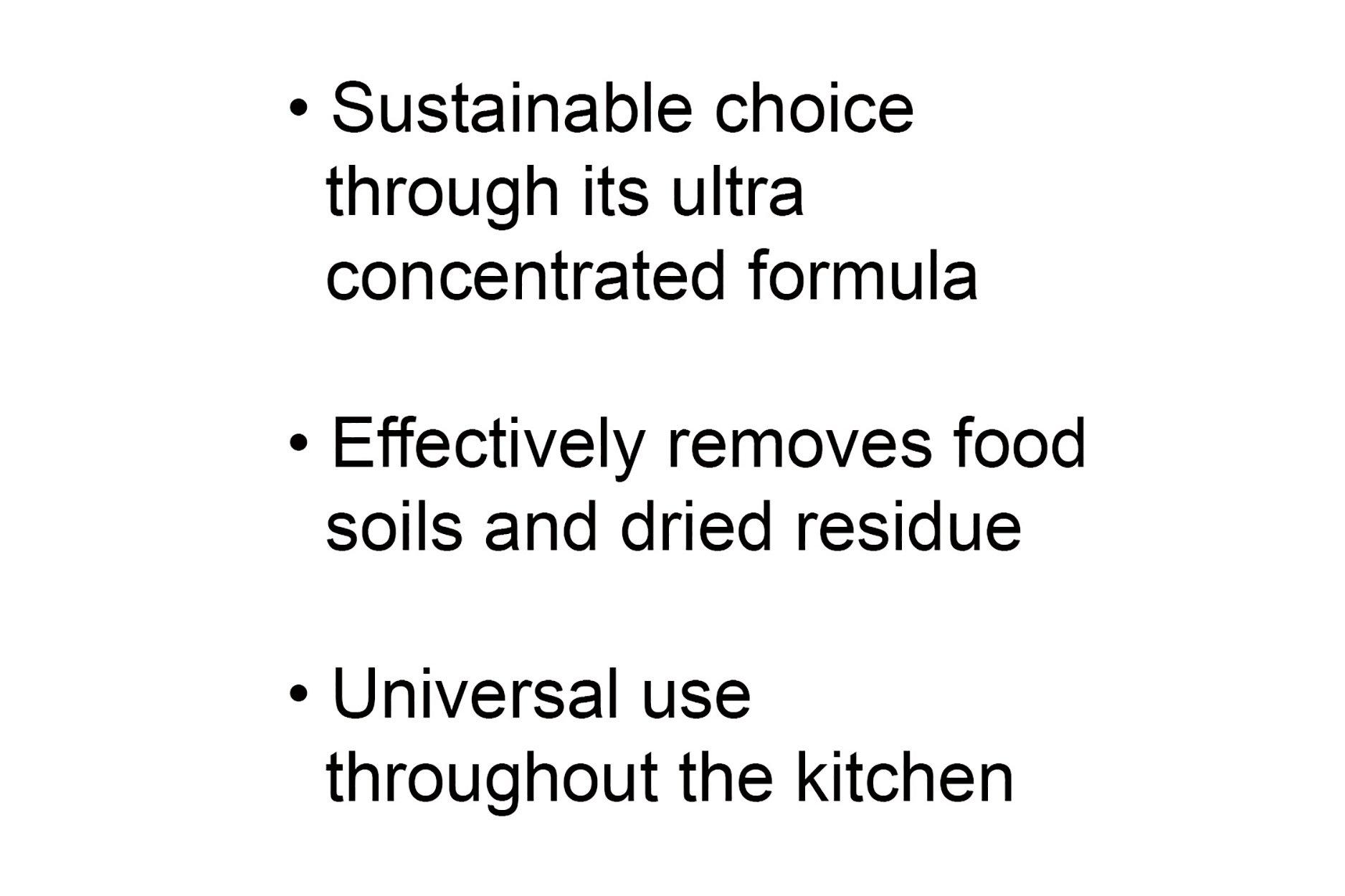 - Allows for universal use throughout the kitchen Ultra concentrated formula significantly reduces packaging waste and CO2 relating to transporting of products vs traditional pack sizes