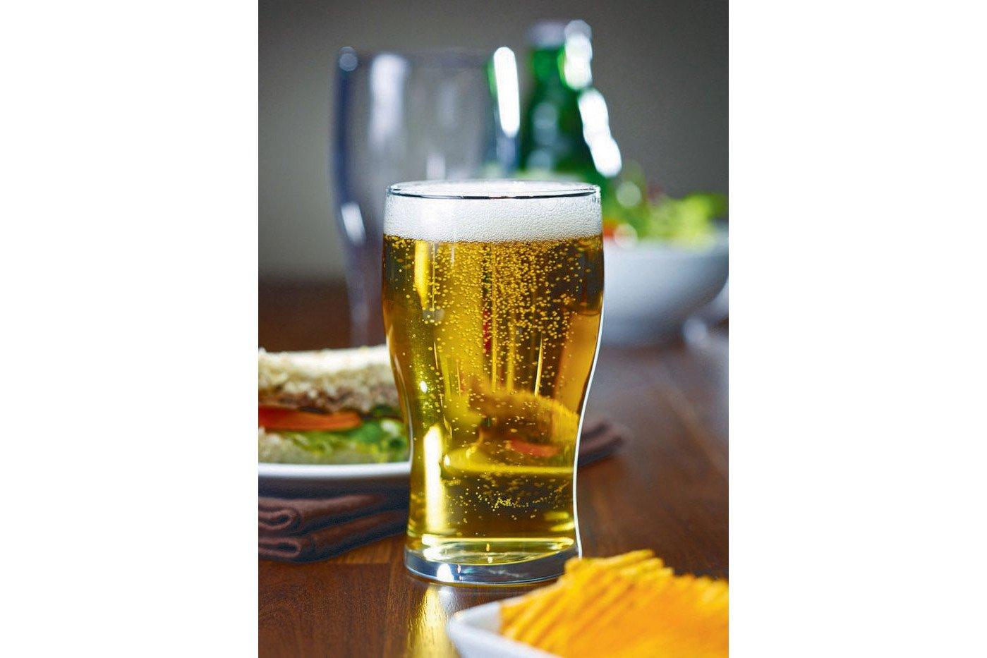 It is a great value glass with increased strength that is available with the activator max nucleation which aids the release of CO2 and maintains a head on carbonated drinks for longer, preventing the drink from going flat.