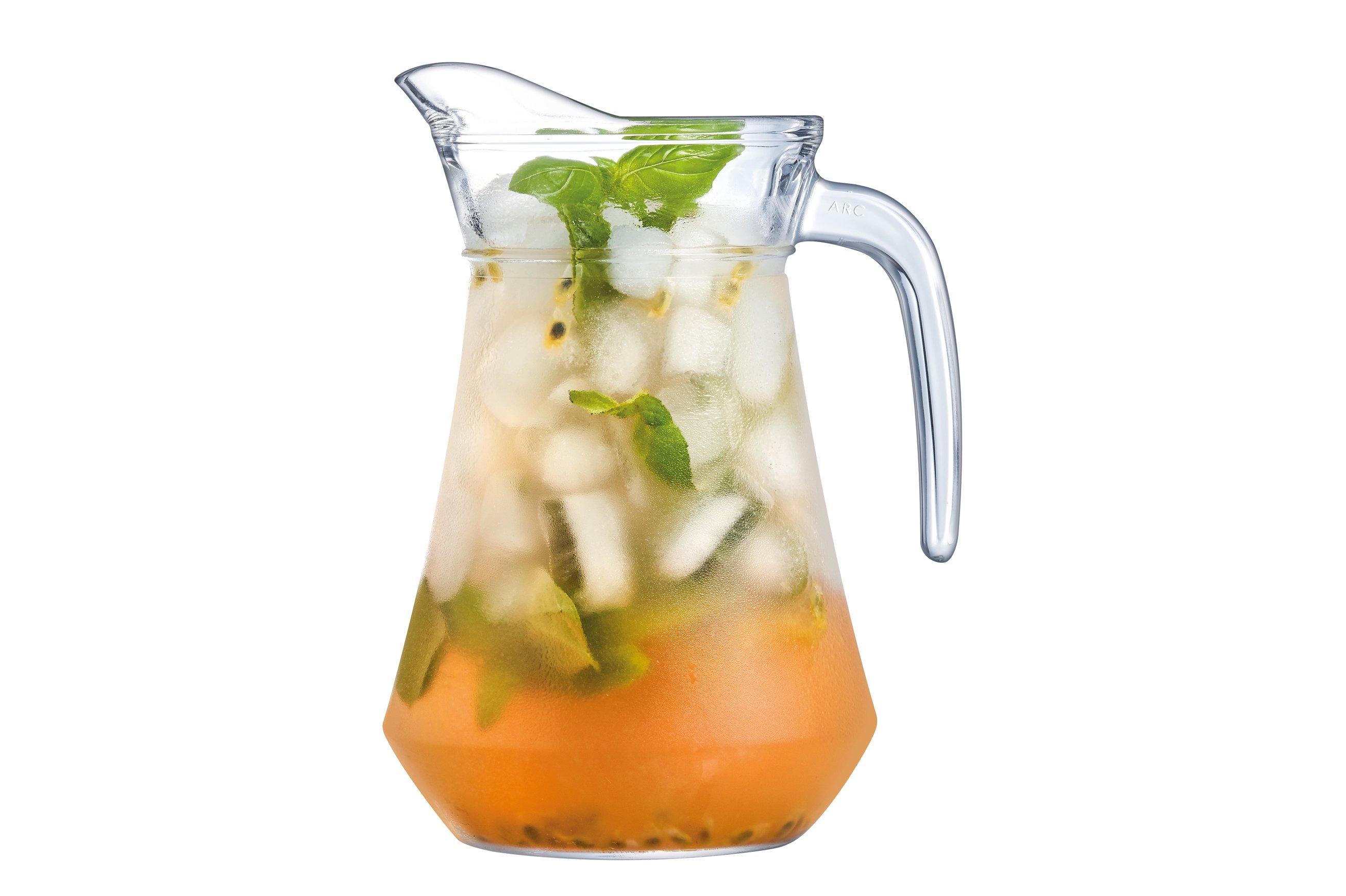 This classic Arc Jug by Arcoroc is designed to be robust and sturdy, with an easy grip handle. This handy ice lip jug has a capacity of 1000ml (1.75pt), which is perfect for serving juice on a breakfast station, a jug full of Pimms or a simple jug of water on the table.