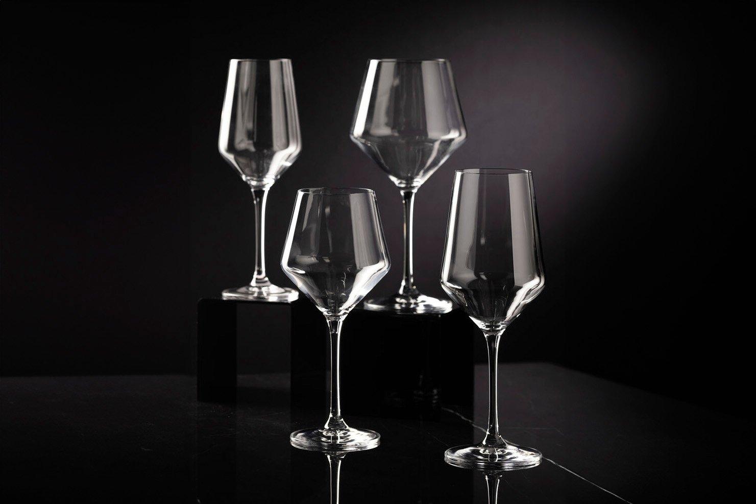 Crafted to perfection by Crown Glassware, Murray combines contemporary elegance with superior quality. Murray's dramatic angular bowl shapes and slender drawn stems create a visually captivating presence, adding a modern touch to any occasion.