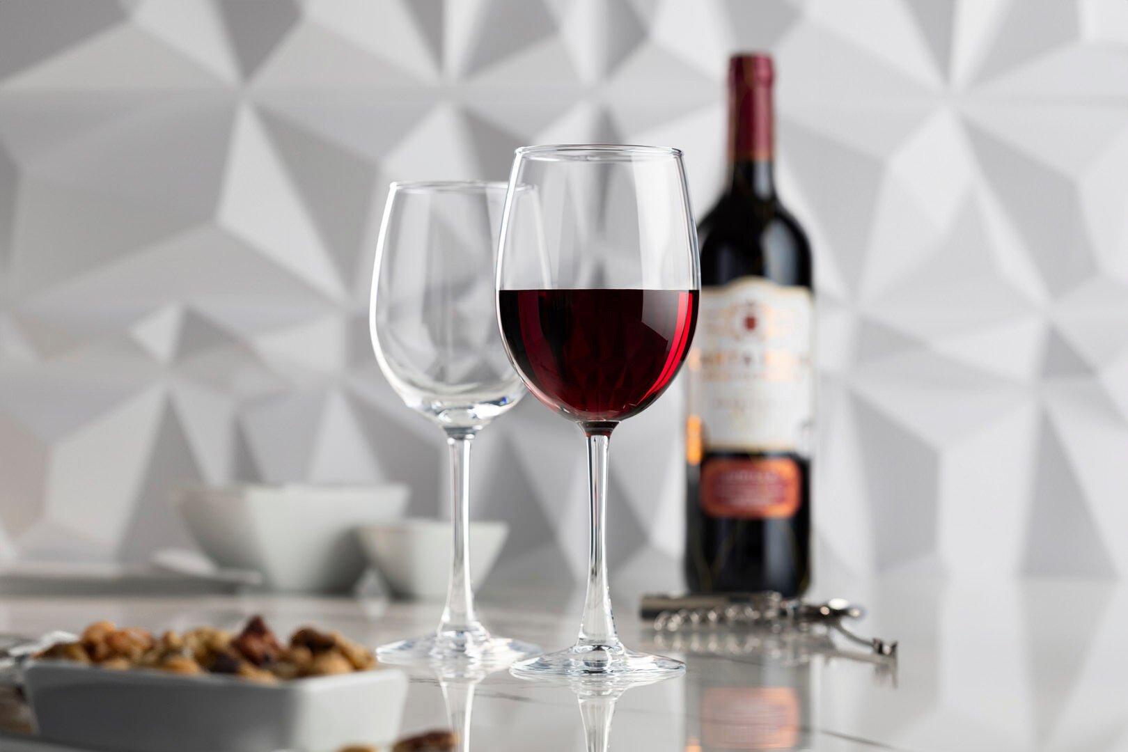 Size 370m (13oz) LCA @ 250mlMasterfully crafted by Crown Glassware, the Vino series boasts two curved-bowl wine glasses and a flute, perfect for all occasions.