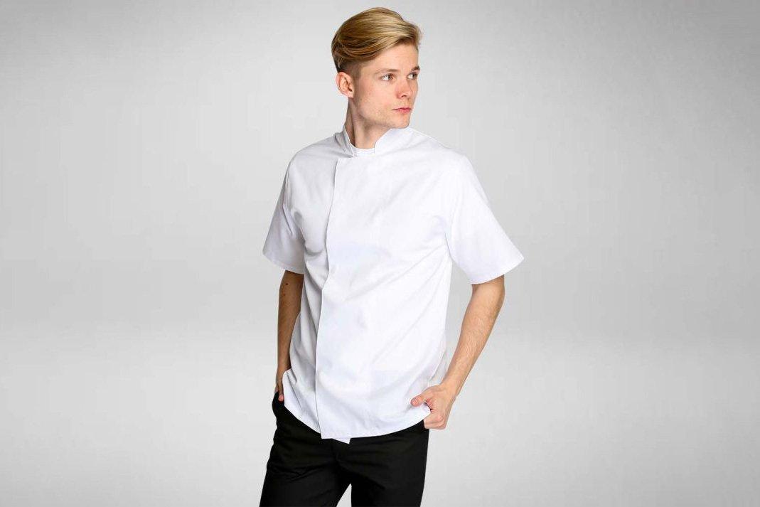 The rest of the Chefs Jacket is made from a 65% polyester / 35% cotton 195gm PolyCotton blend, combining both quality and comfort. The short sleeves also help with keeping the wearer cool whilst cooking and the concealed stud fasteners deliver a fantastically clean, smart appearance.
