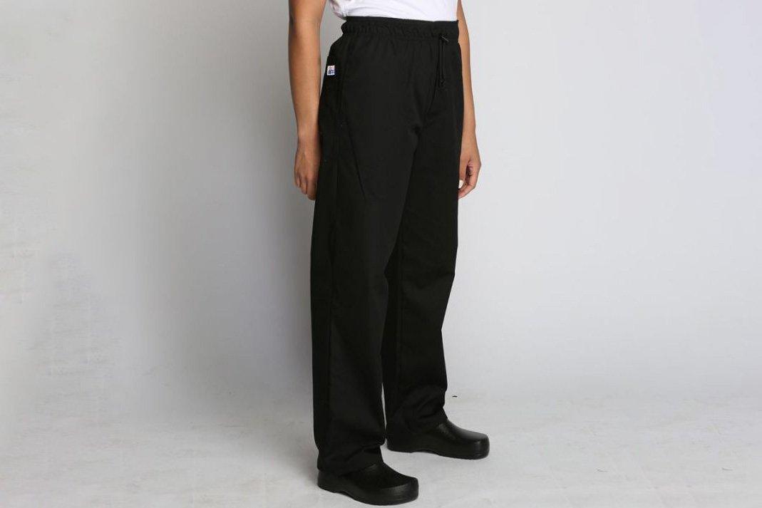 These Black Polycotton Elasticated Trousers are the ideal solution for any catering establishment, ideal for hotels, restaurants, hospitals and much more. These trousers are a size X Large - 116-121cm (46-48") waist. These black trousers are designed to be practical, comfortable and able to withstand vigorous laundry. It also has a unisex design for practicality, convenience and greater value for money.